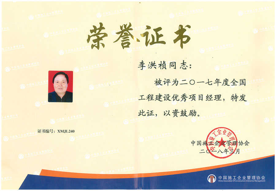 李洪禎-2017年度全優(yōu)秀項(xiàng)目經(jīng)理
